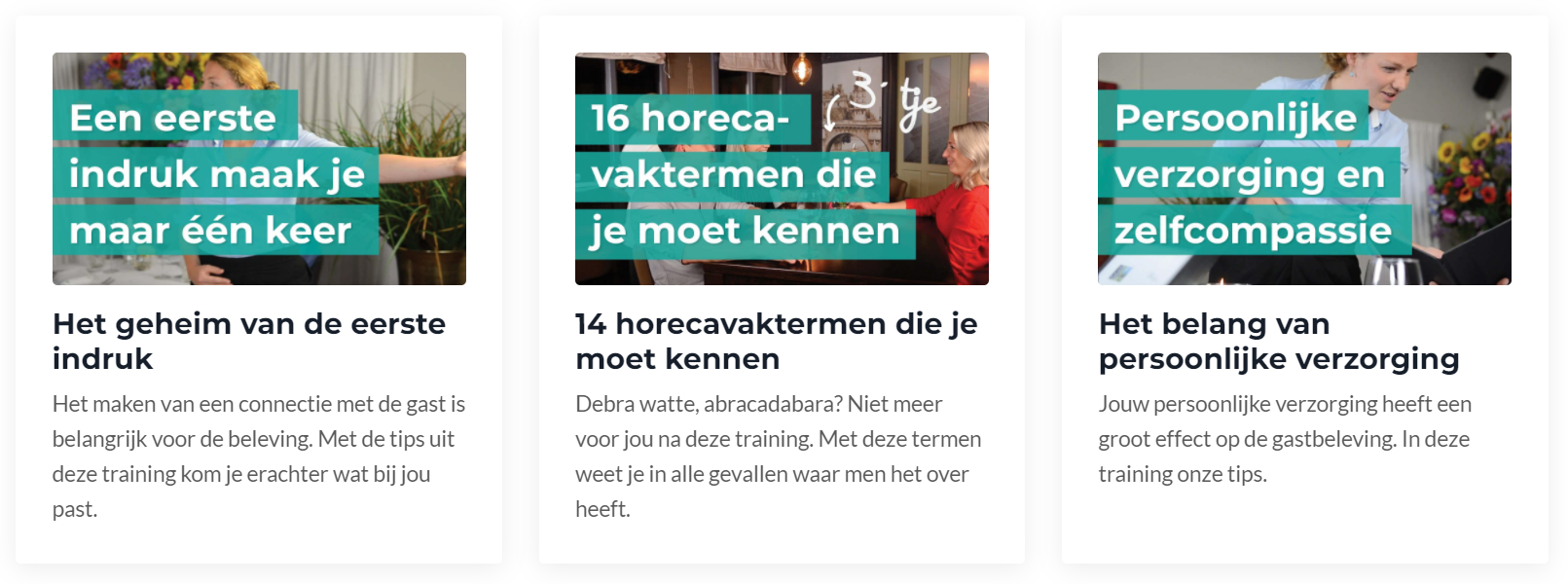In deze module bekijken we vanuit de ogen van de gast wat fijn is en wat niet. Een echte eye-opener voor aankomende horeca pro’s. Honderden tips en tricks in korte videotrainingen.